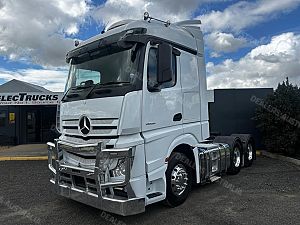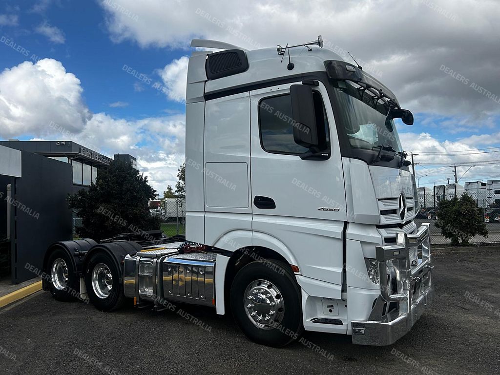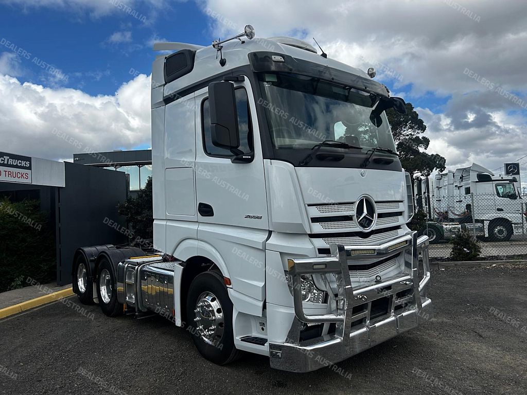 2019 Mercedes-Benz Actros 2658 6x4 prime mover, M-benz 580hp engine, auto transmission , airbag suspension, m-benz diffs, 90 tonne rated, abs, integrated sleeper cab with bunk cooler, ** PTO & HYDRAULICS ** alloy bullbar, alloy rims, full mercedes service history, comes with vic RWC & 3 months drive-line warranty !
