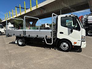 2017 Hino 300 Series 616 Medium Auto ** Drive On Car Licence ** Fitted with a New Alloy Tray Measuring 4,200mm Long x 2,050mm wide Internal, 325mm High Drop Sides, Centre and Rear Removable Ladder Racks, Heavy Duty Access Steps and Grab Handles, Rope Rails, Tail Light Protector with Wiring Guard.